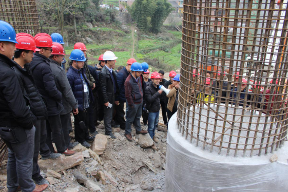 12月10日下午,在JL2總監(jiān)辦的組織下,業(yè)主副總工程師兼工程處處長張曉波、JL2總監(jiān)辦總監(jiān)黃遠東及江習古高速公路TJ1-TJ13分部的人員,觀摩我分部正在施工的新龍臺大橋墩柱鋼筋保護層厚度控制措施。