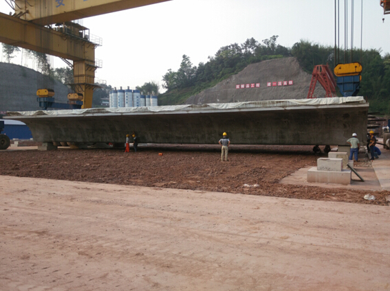5月13日下午16時(shí),伴隨著機(jī)器的轟鳴聲、鞭炮聲、熱烈的掌聲和歡呼聲,900T輪式提梁機(jī)將737.6噸箱梁緩緩提起,成功將737.6噸箱梁移至存梁臺(tái)座,這標(biāo)志著翠屏制梁場正式進(jìn)入箱梁批量生產(chǎn)階段,為后期的施工生產(chǎn)奠定了堅(jiān)實(shí)的基礎(chǔ)。