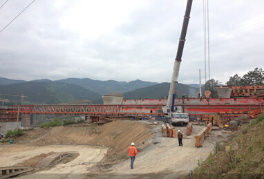 2014年3月16日,修城壩清江河特大橋移動(dòng)模架開始拼裝,至4月3日,第一階段拼裝完成。