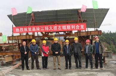 2014年1月6日下午14時,遂廣高速武勝嘉陵江特大橋上彩旗飄揚,一派熱火朝天的景象。隨著最后一方混凝土澆注,由我司遂廣高速SG1-4項目施工的武勝嘉陵江特大橋主橋中跨澆注完成,嘉陵江特大橋主橋右幅順利合龍。這一合龍,標志著遂廣高速難度最大、跨度最大、安全風險最高的特大橋控制性工程已被我部順利攻克,為2015年全線通車贏得了寶貴時間。