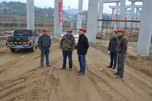 2014年12月10日,橋梁公司董事長(zhǎng)蔡樂(lè)軍一行前往工地。對(duì)23公里施工線路內(nèi)的路基、橋梁施工情況進(jìn)行了全面檢查,對(duì)照業(yè)主下發(fā)的節(jié)點(diǎn)目標(biāo)任務(wù)要求,在逐一聽(tīng)取分部對(duì)每一個(gè)作業(yè)點(diǎn)的工作安排和匯報(bào)后,提出指導(dǎo)意見(jiàn)。