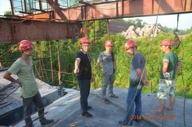 下午四點(diǎn),蔡董不顧高溫炎熱,一下車就深入施工現(xiàn)場。在項(xiàng)目經(jīng)理詹文等人的陪同下,以路基一隊(duì)為起點(diǎn),沿線檢查了路基一隊(duì)、米湯溝大橋、路基二隊(duì)、余家溝大橋、預(yù)制場、彭家溝大橋、嘉陵江特大橋。在施工現(xiàn)場,蔡董認(rèn)真察看工程質(zhì)量,仔細(xì)詢問施工進(jìn)度及影響施工進(jìn)度的主要因素。在聽取了項(xiàng)目經(jīng)理詹文詳盡匯報(bào)后,蔡董對項(xiàng)目部不等不靠、千方百計(jì)推進(jìn)項(xiàng)目施工進(jìn)度表示滿意,同時(shí)對項(xiàng)目部取得的成績給予肯定,并提出幾點(diǎn)要求:一是路基一隊(duì)的路基要預(yù)留填筑30cm,并在交路前填筑;二是米湯溝大橋要加快7#墩進(jìn)度,把控好工期,同時(shí),要加強(qiáng)對高墩施工的安全管控,在確保安全的前提下加快進(jìn)度;三是嘉陵江特大橋懸臂塊件要嚴(yán)把質(zhì)量安全關(guān),將施工質(zhì)量與安全生產(chǎn)放在首位;四是將嘉陵江特大橋索橋的荷載試驗(yàn)由均布荷載改成集中荷載;五是要加快嘉陵江特大橋17#墩進(jìn)度,積極推進(jìn)每月目標(biāo)進(jìn)度,抓組織,抓質(zhì)量,抓節(jié)點(diǎn)控制,全力確保節(jié)點(diǎn)目標(biāo)順利實(shí)現(xiàn);六是要做好防暑降溫工作,適當(dāng)調(diào)整作息時(shí)間,避開高溫時(shí)段施工,確保勞動(dòng)安全,安全度夏。