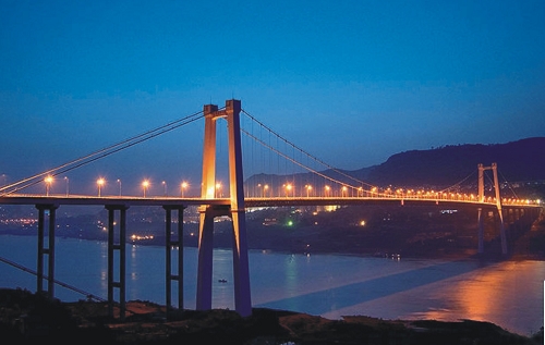 全長1148.86米,主跨580米,鋼桁梁懸索橋,2003年6月建成通車。獲2008年國家優(yōu)質(zhì)